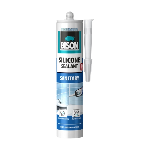 Bison Sanitary Silicone е висококвалитетен, трајно еластичен и водоотпорен силикон, специјално дизајниран за санитарни простории.