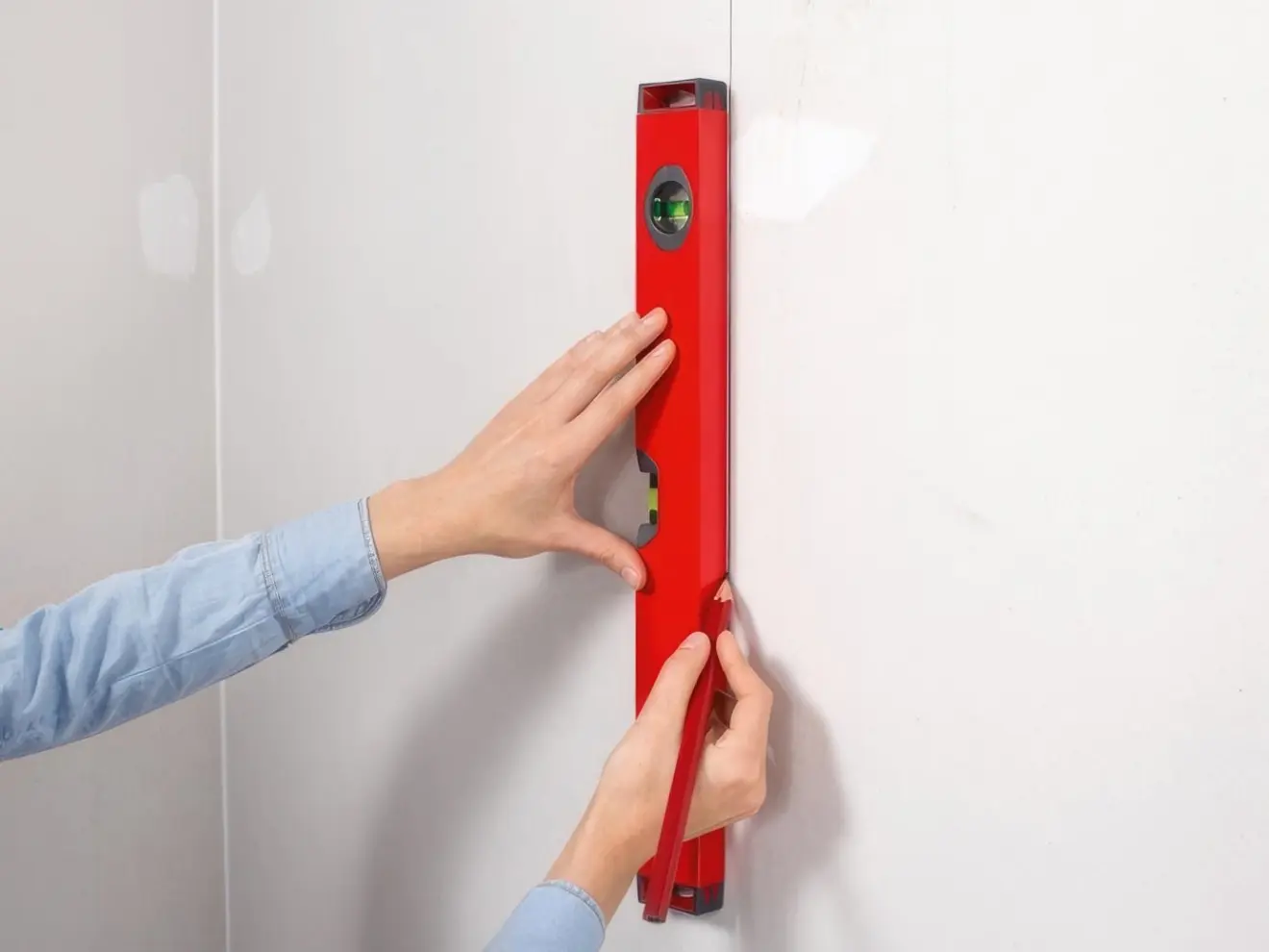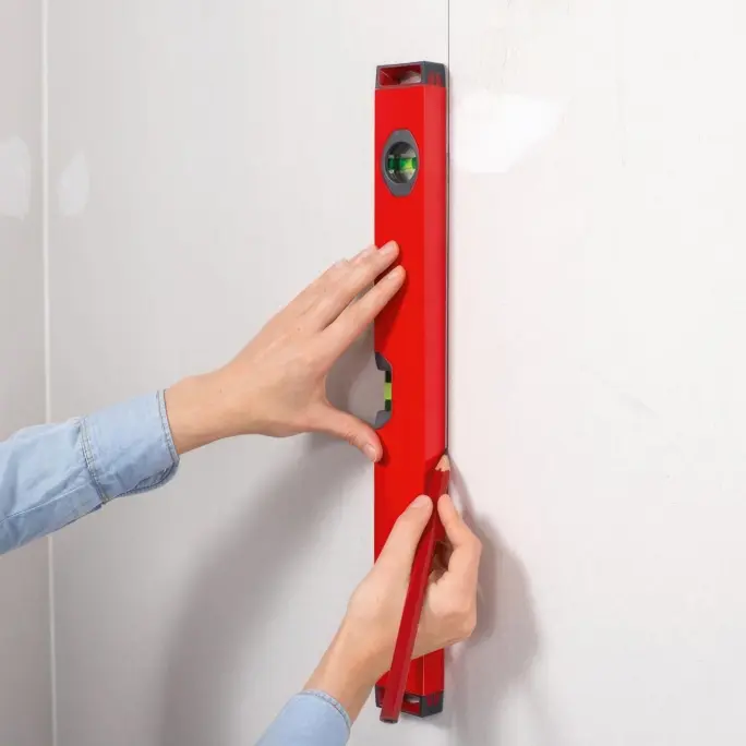 Започни со најважниот ѕид – од страната на главниот извор на светлина или прозорец. Многу е важно првата лента да биде поставена совршено право. Најдобро е со молив да нацрташ вертикална линија користејќи висулец или либела.