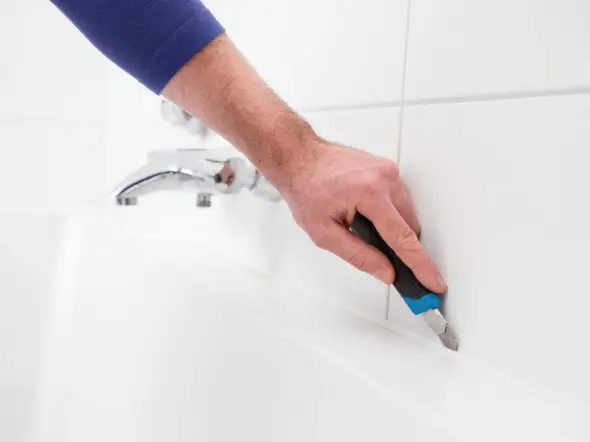 Отстранете ги тврдокорните остатоци со стругалка за заптивни смеси или средство за отстранување силикон