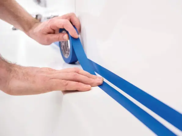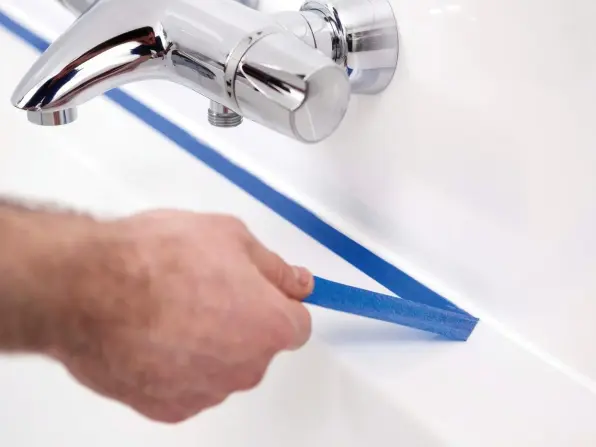 Залепете ја лентата на кадата и ѕидот, околу 2 до 3 мм од центарот на спојот.