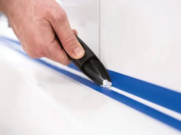 Израмнете го спојот на заптивната смеса во рок од 10 минути со мулти-алатката , така што ќе се формира косен спој на заптивната смеса.